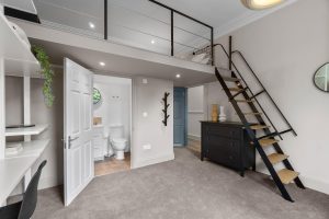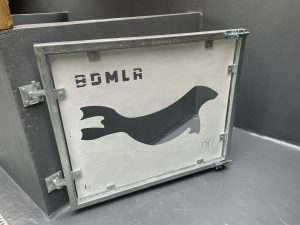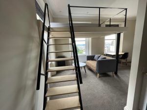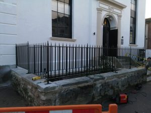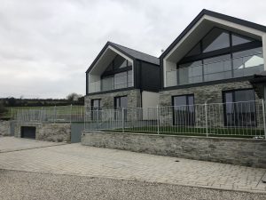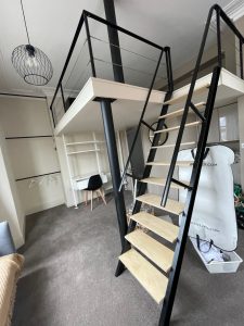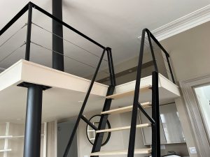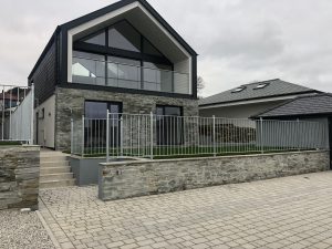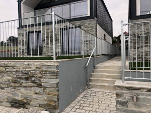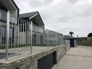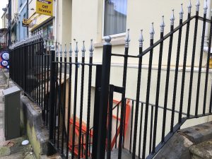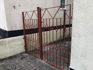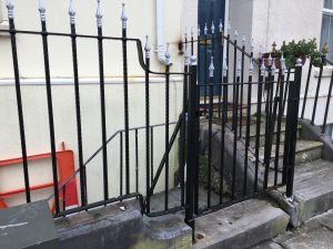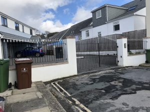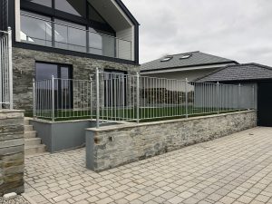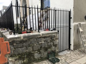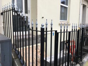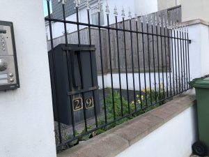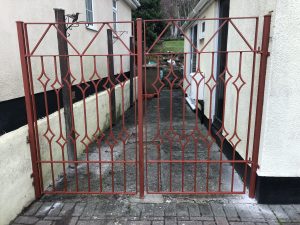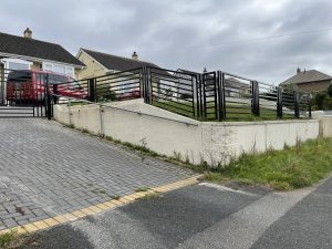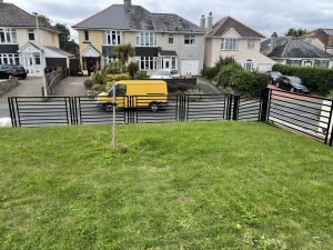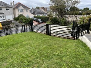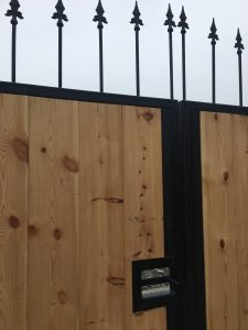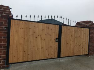 Black powder-coated metal gate with timber cladding custom fabrication by NS Metal Crafting